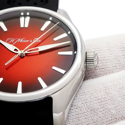 H.モーザー H. MOSER & CIE. パイオニア センターセコンド 3200-1207 赤 スイスマッドレッド フュメ グラデーション メンズ 腕時計自動巻き レッド 【中古】