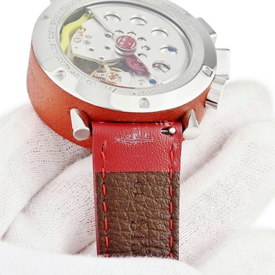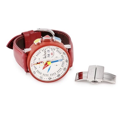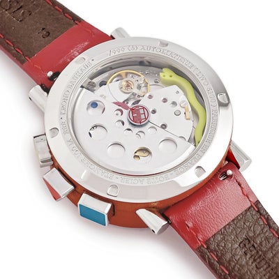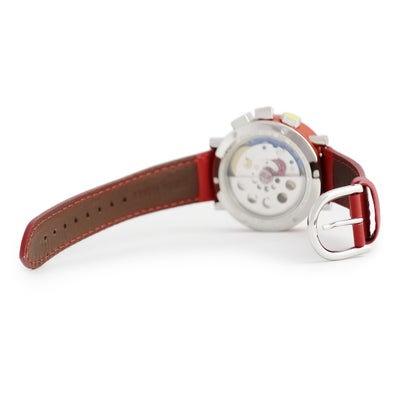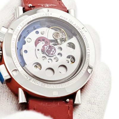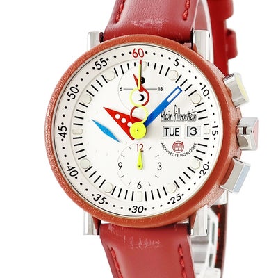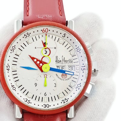 アランシルベスタイン ALAIN SILBERSTEIN クロノ バウハウス グミ LWO5100 OH済 レッド 赤 デイデイト 限定 メンズ 腕時計自動巻き シルバー 【中古】