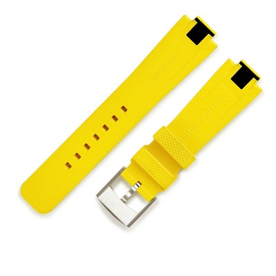 ルイヴィトン LOUIS VUITTON 腕時計パーツ 純正 タンブール用 ダミエ ラバーバンド ラバー ステンレススチール イエロー シルバー金具 未使用 替え ベルト 予備 正規品 純正SS製尾錠付き 21mm イエロー 黄 【中古】