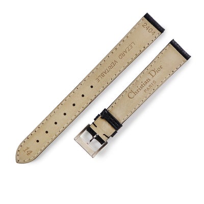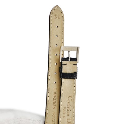 クリスチャン・ディオール Christian Dior 腕時計パーツ 純正 リザード ステンレススチール ブラック 未使用 替え リザードバンド ベルト 14mm ブラック 黒 バネ棒 尾錠付き 【中古】