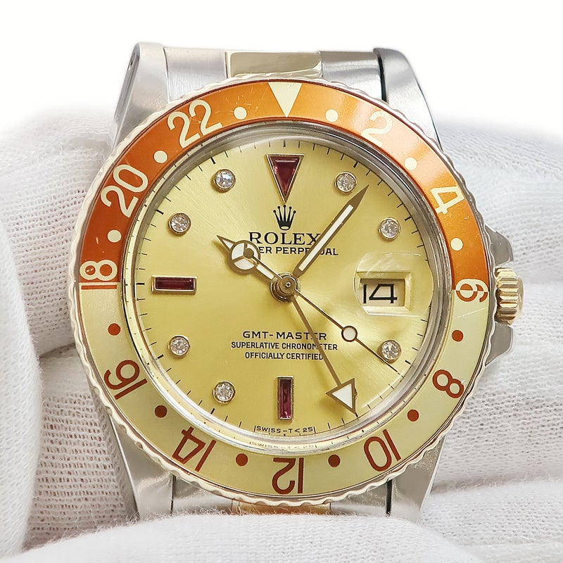 ロレックス ROLEX GMTマスター 16753RG 62番 K18YG×SS 純正ダイヤ シャンパン ルートビア 70年代後期 希少 メンズ 腕時計自動巻き ゴールド 【中古】