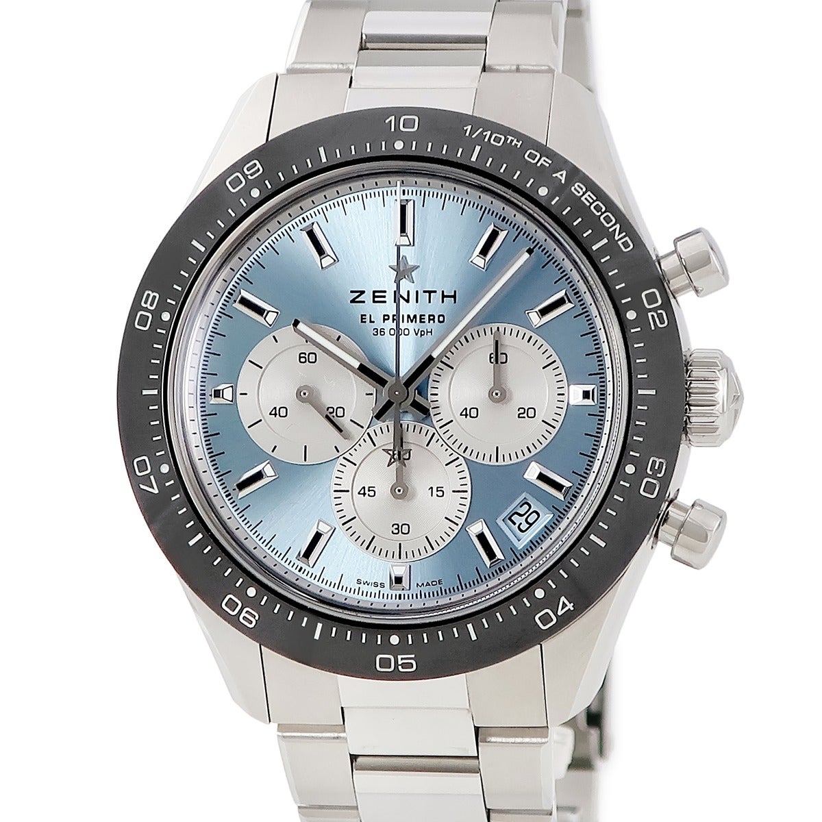 他の画像を見る ゼニス ZENITH クロノマスター スポーツ ヨシダスペシャル 03.3106.3600/55.M3100 水色 アイスブルー 限定 メンズ 腕時計自動巻き ブルー 【中古】 当店価格: ¥ 1,293,600 税込 中古 カートに入れる