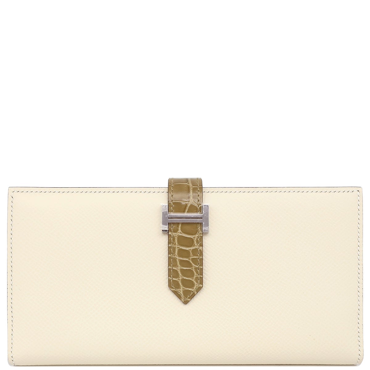 他の画像を見る エルメス HERMES 長財布 ベアンスフレ タッチ ヴォーエプソン アリゲーター ナタ×ベージュサブレ シルバー金具 新品 未使用 アイボリー クロコ 二つ折り財布 U刻印 【箱】 【中古】 HERMES長財布 当店価格: ¥ 517,440 税込 中古 未使用 カートに入れる