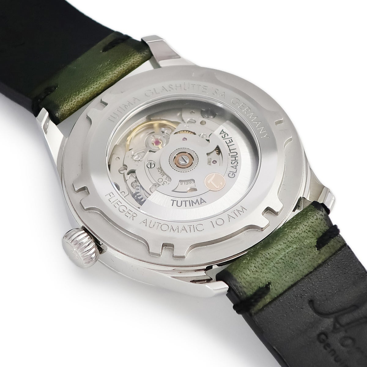 他の画像を見る チュチマ Tutima フリーガー 6105-29 緑 デイト パイロット アラビア バー シースルーバック メンズ 腕時計自動巻き グリーン 【中古】 Tutima腕時計 当店価格: ¥ 194,040 税込 中古 カートに入れる