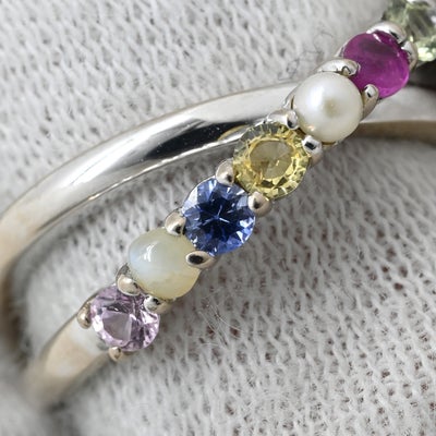 リング 指輪 ホワイトゴールド×マルチカラー ダイヤ ルビー ピンクスピネル サファイア ガーネット パール クリソベリルキャッツアイ 14号 【中古】