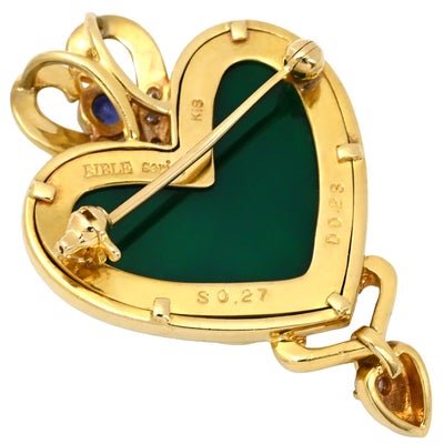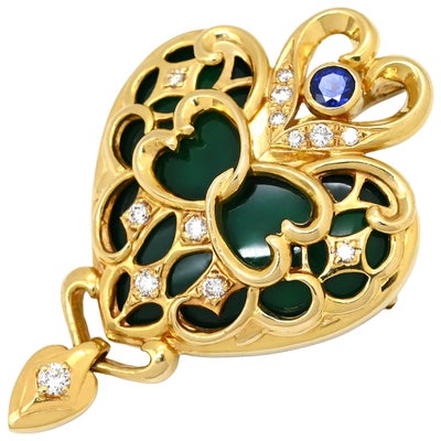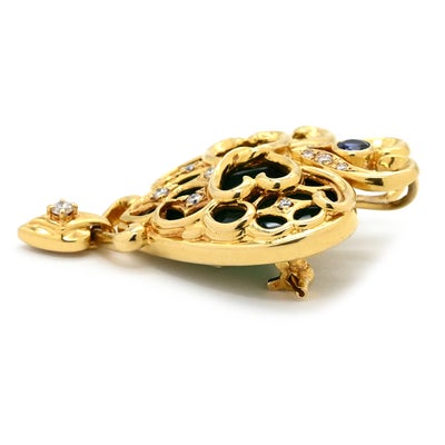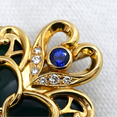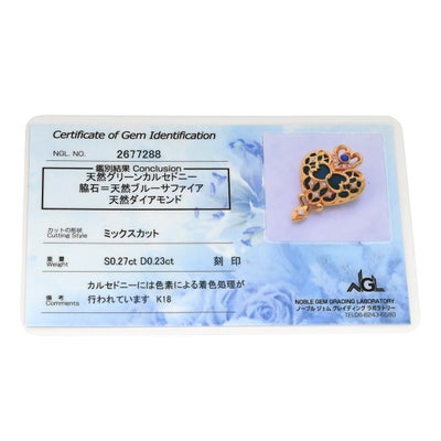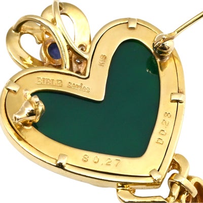 バイブルシリーズ BIBLE SERIES ブローチ グリーンカルセドニー サファイア ダイヤ グリーン×ブルー×イエローゴールド 緑 青 18K 750 ペンダントトップ 【中古】