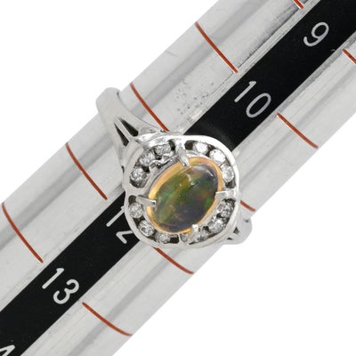 リング 指輪 ファイアオパール ダイヤリング プラチナシルバー メキシコオパール 11号 【中古】