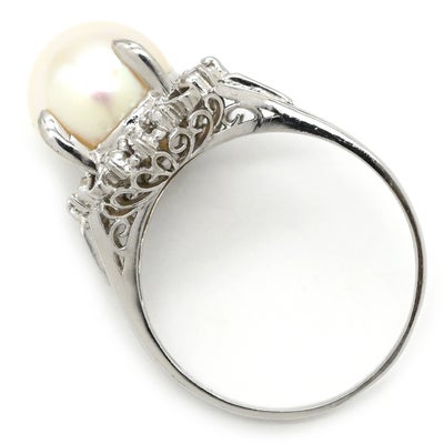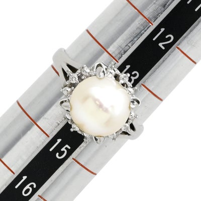 リング 指輪 アコヤパール ダイヤリング プラチナシルバー 1粒 1P 14号 【中古】