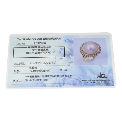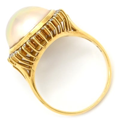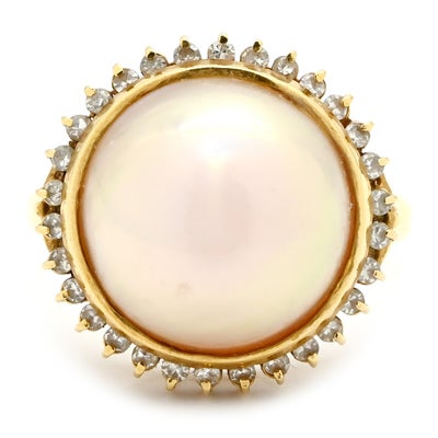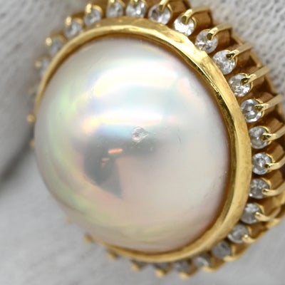 リング 指輪 パールホワイト×イエローゴールド 1P 1粒 マベパール 真珠 ダイヤ ハーフパール 18K 18金 YG ダイヤモンド 10.5号 【中古】
