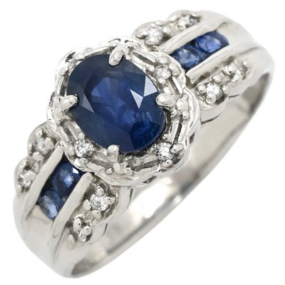 リング 指輪 ブルーサファイア ダイヤ リング ブルー×プラチナシルバー 青 プラチナム オーバル ブルー 12.5号 【中古】