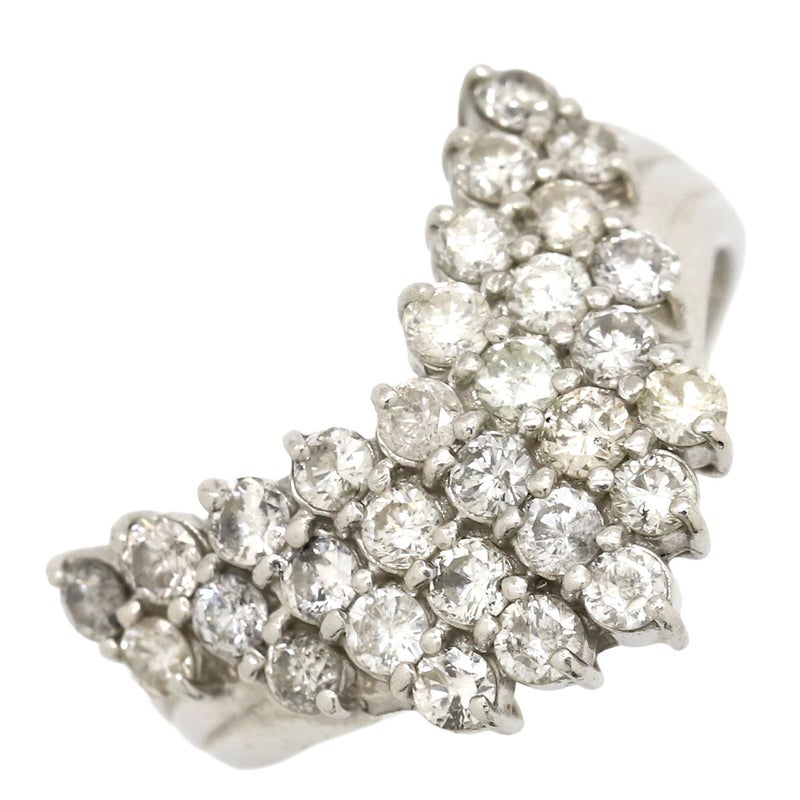 リング 指輪 ダイヤリング プラチナシルバー V字 Vライン 7号 【中古】