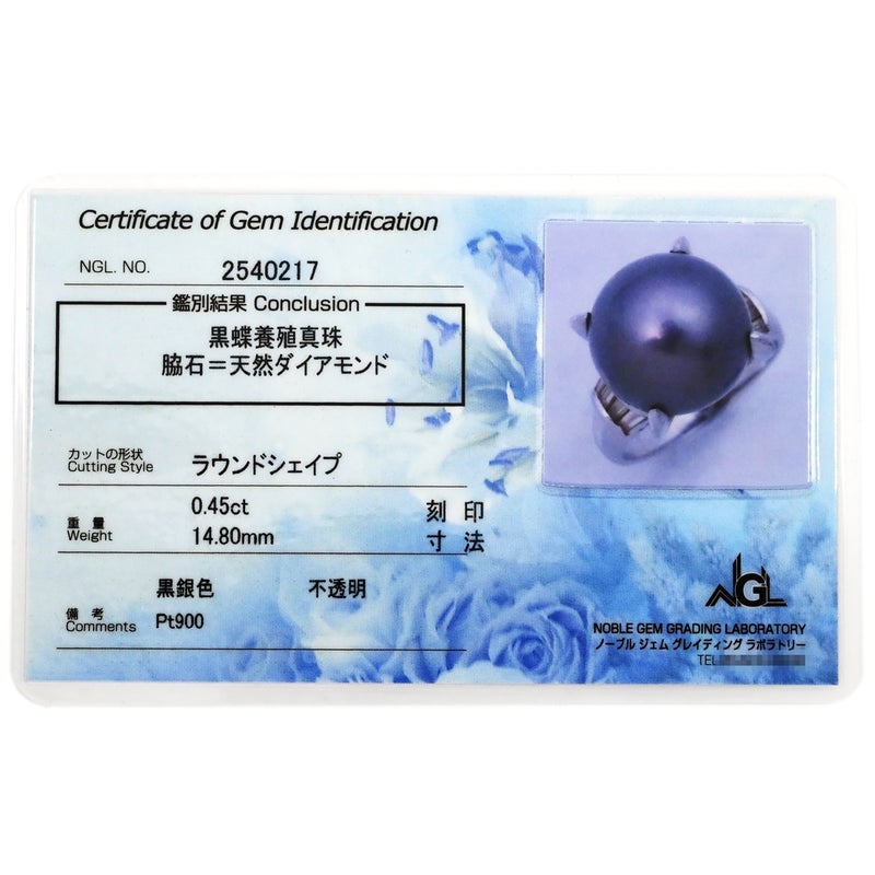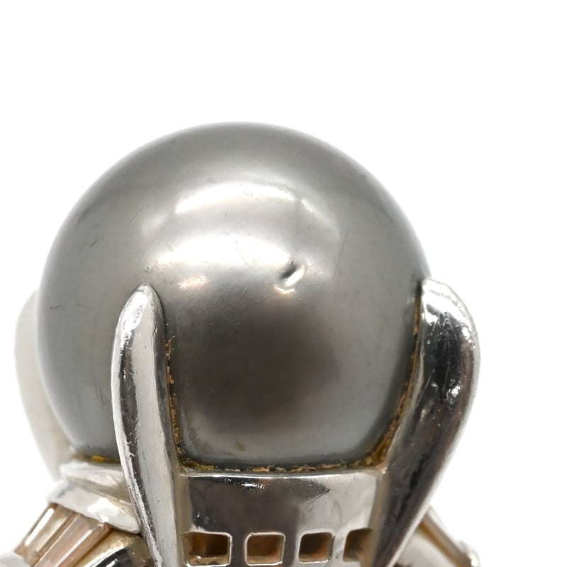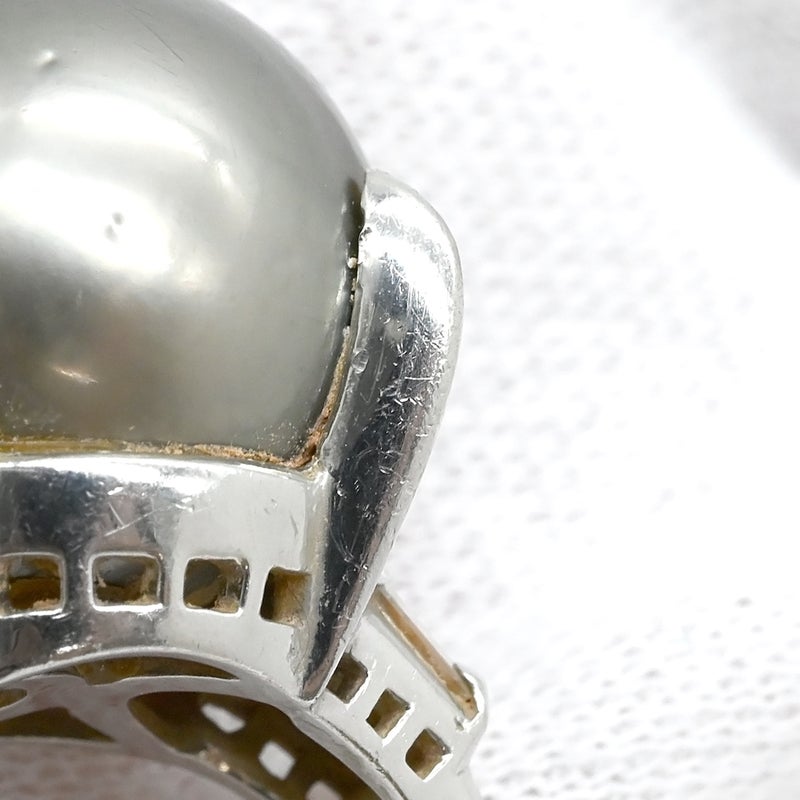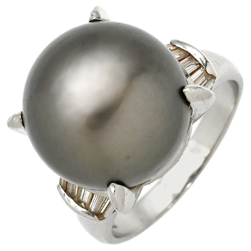 リング 指輪 黒蝶パール ダイヤリング プラチナシルバー 1粒 1P 16.5号 【中古】