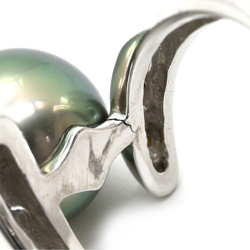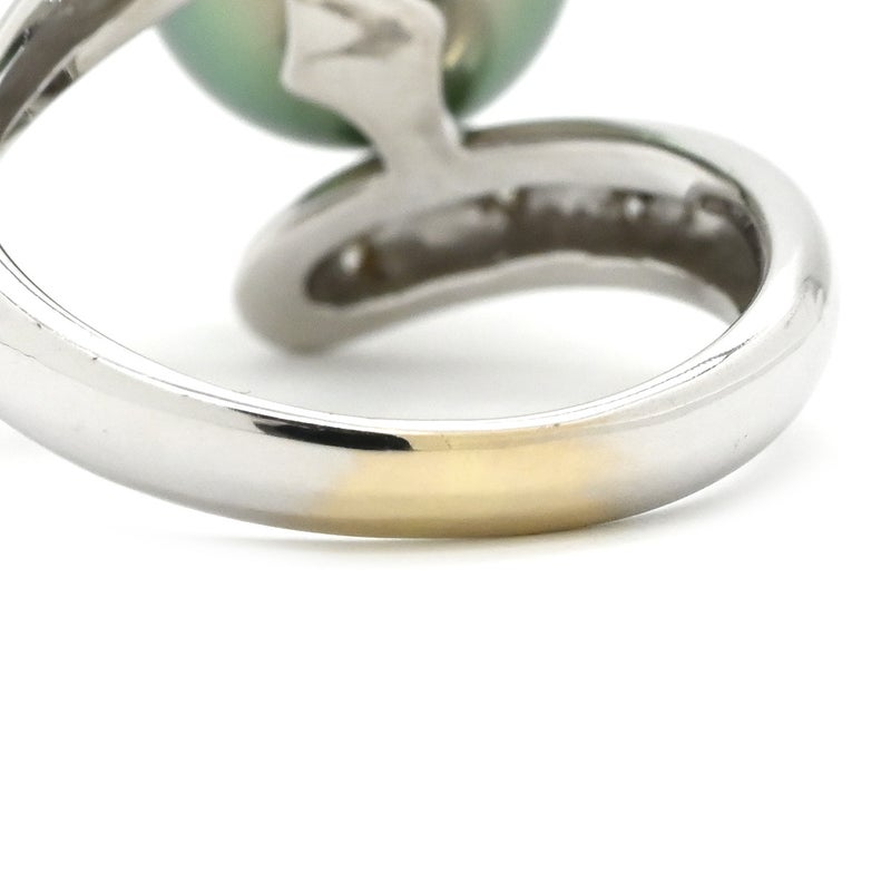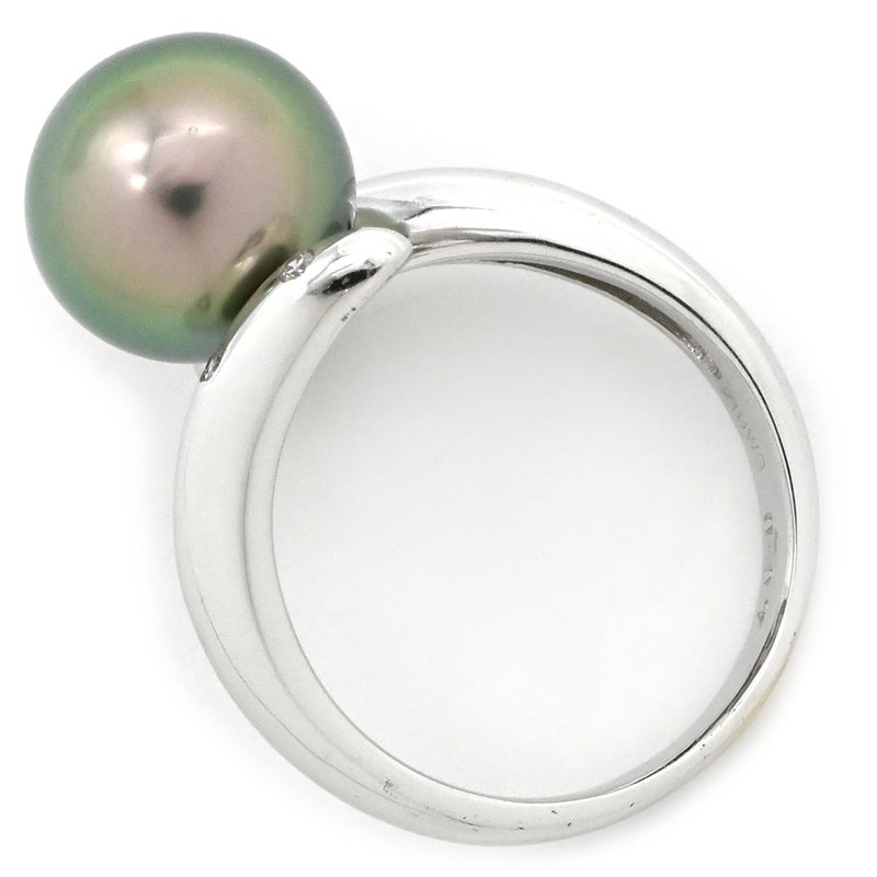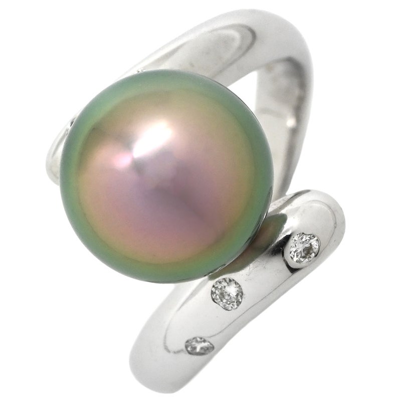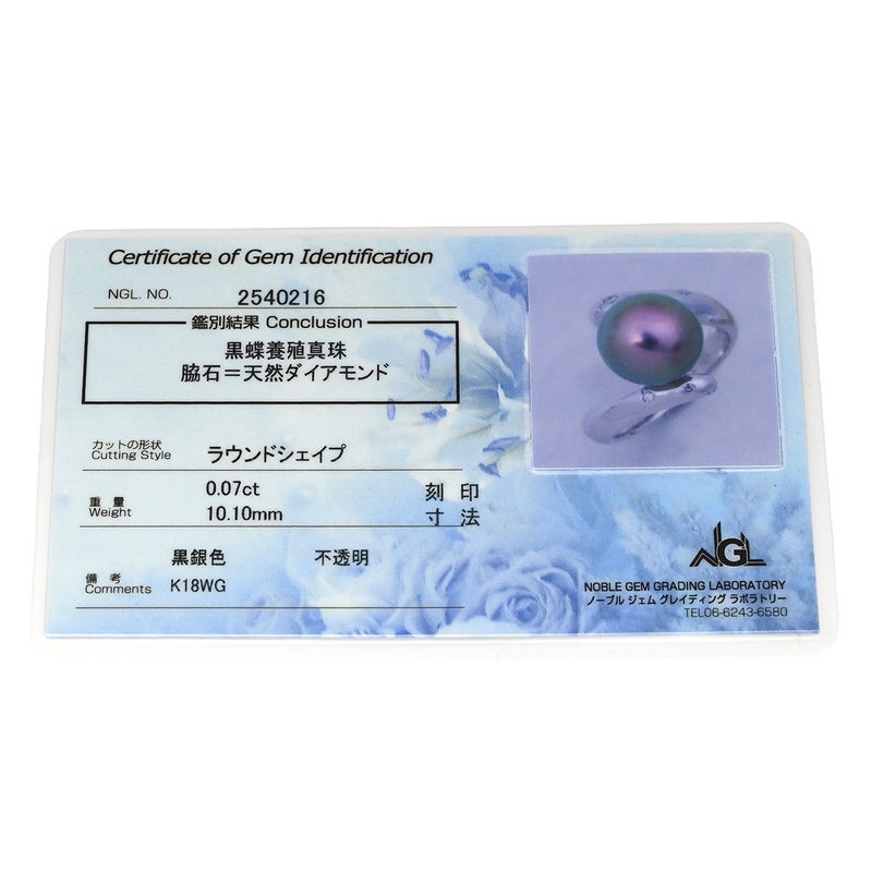 リング 指輪 黒蝶パール ダイヤリング ホワイトゴールド 1粒 1P 11号 【中古】