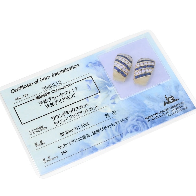 イヤリング サファイヤ ダイヤモンド イヤリング イエローゴールド×ブルーサファイア 750 YG 【中古】