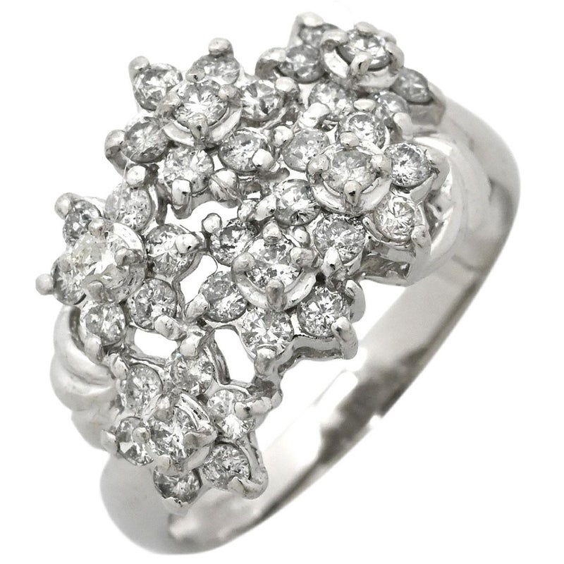 リング 指輪 ダイヤリング プラチナシルバー フラワーモチーフ 11号 【中古】