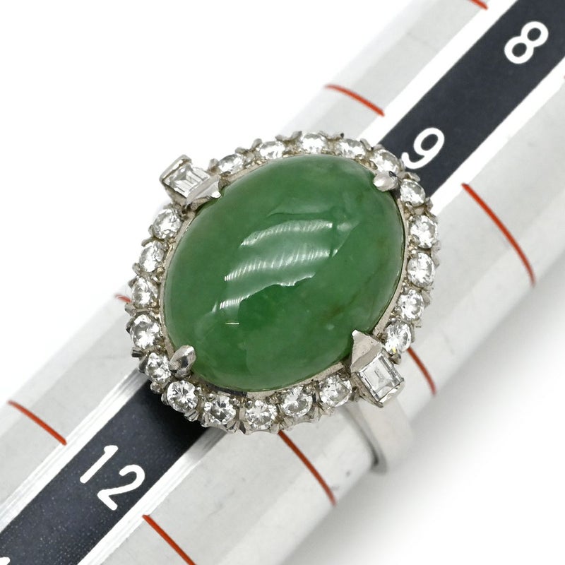 リング 指輪 ヒスイ ダイヤリング プラチナシルバー 翡翠 グリーン 10.5号 【中古】