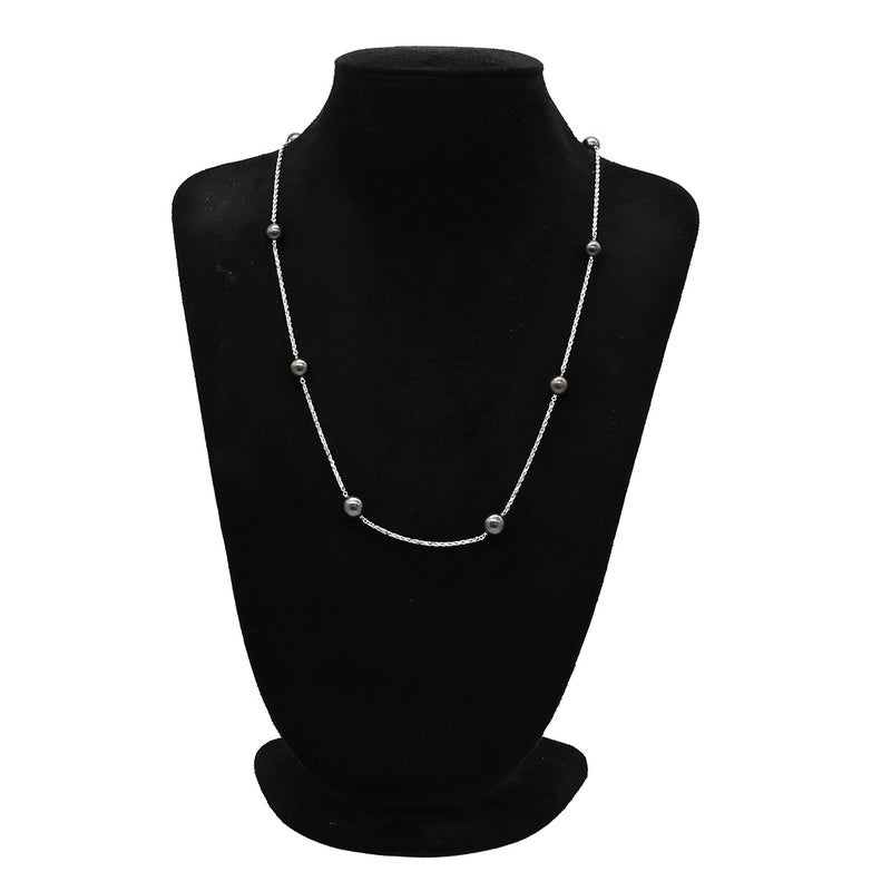 ネックレス ステーションネックレス パールブラック 黒 黒蝶パール 真珠 750 ホワイトゴールド ブラック パール 【中古】