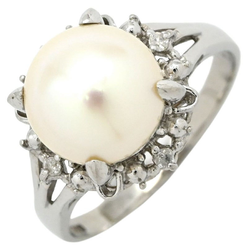 リング 指輪 アコヤパール ダイヤリング プラチナシルバー 1粒 1P 14号 【中古】