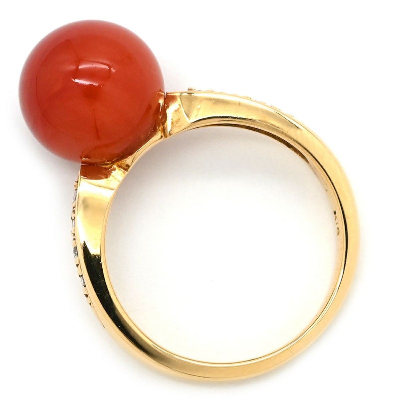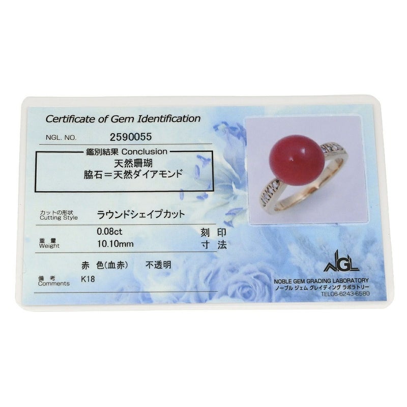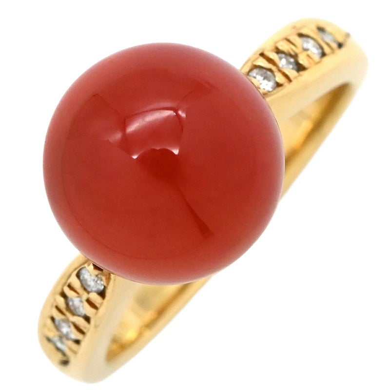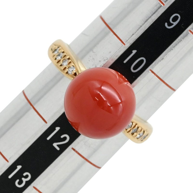 リング 指輪 珊瑚 ダイヤリング イエローゴールド サンゴ 11号 【中古】