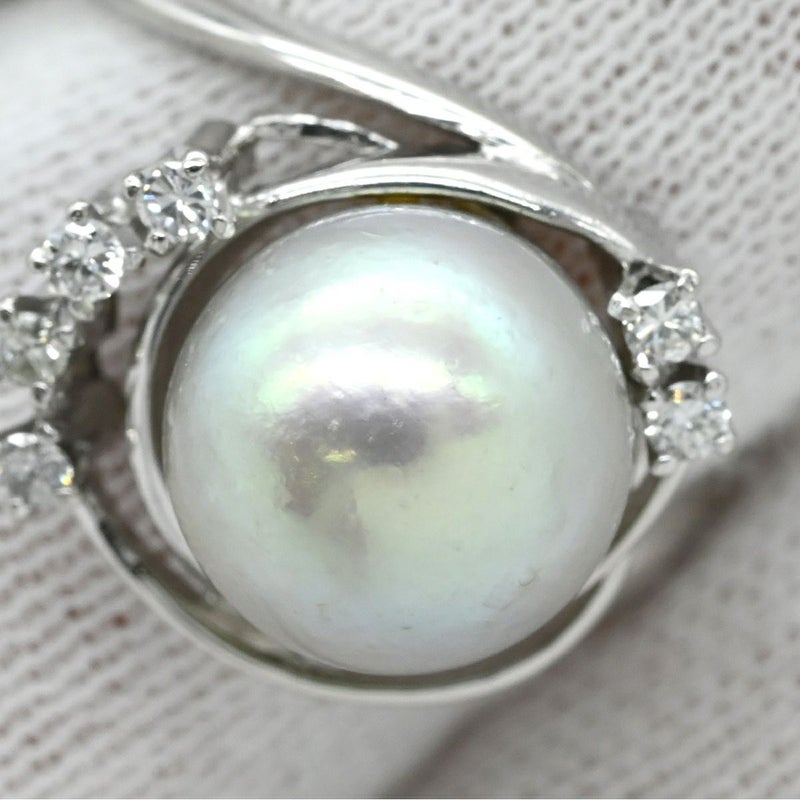 リング 指輪 アコヤパール ダイヤリング プラチナシルバー 1粒 1P 11号 【中古】
