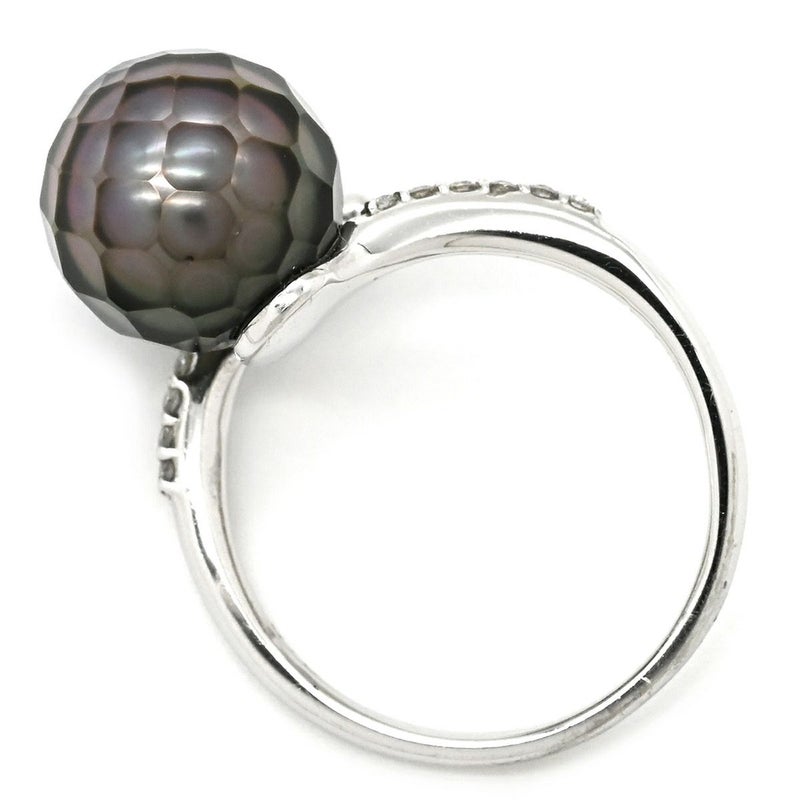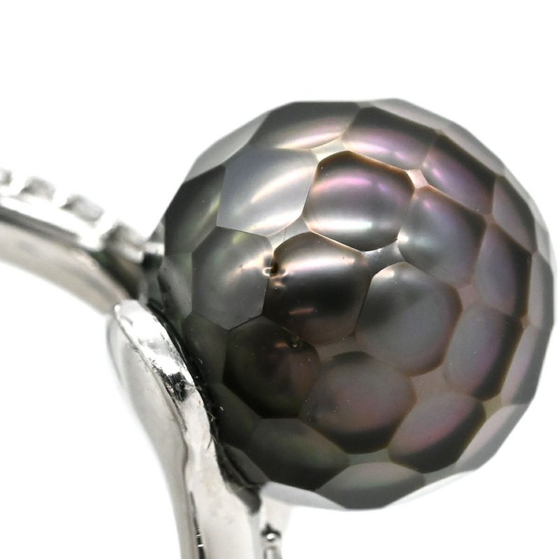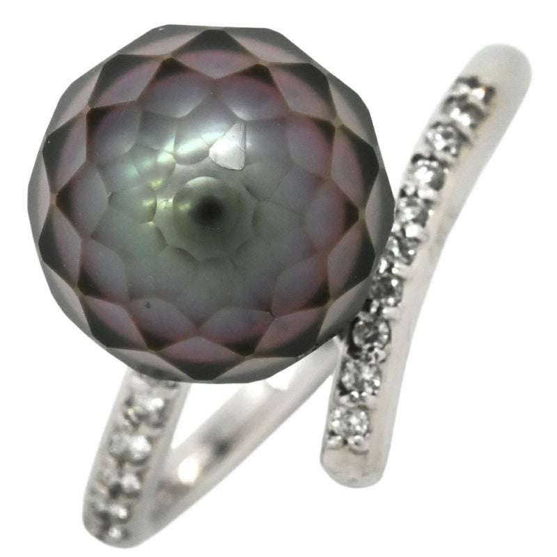 リング 指輪 黒蝶パール ダイヤリング プラチナシルバー 1粒 1P 華真珠 12.5号 【中古】