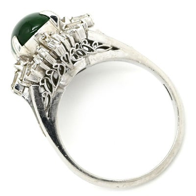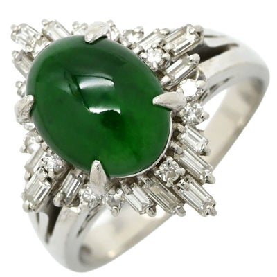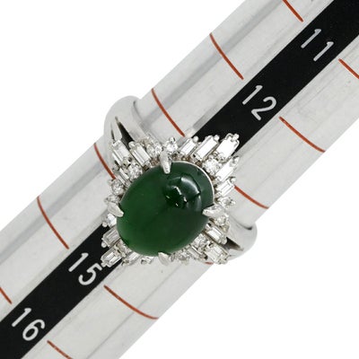 リング 指輪 ヒスイ ダイヤリング プラチナシルバー 翡翠 グリーン カボションカット 13.5号 【中古】