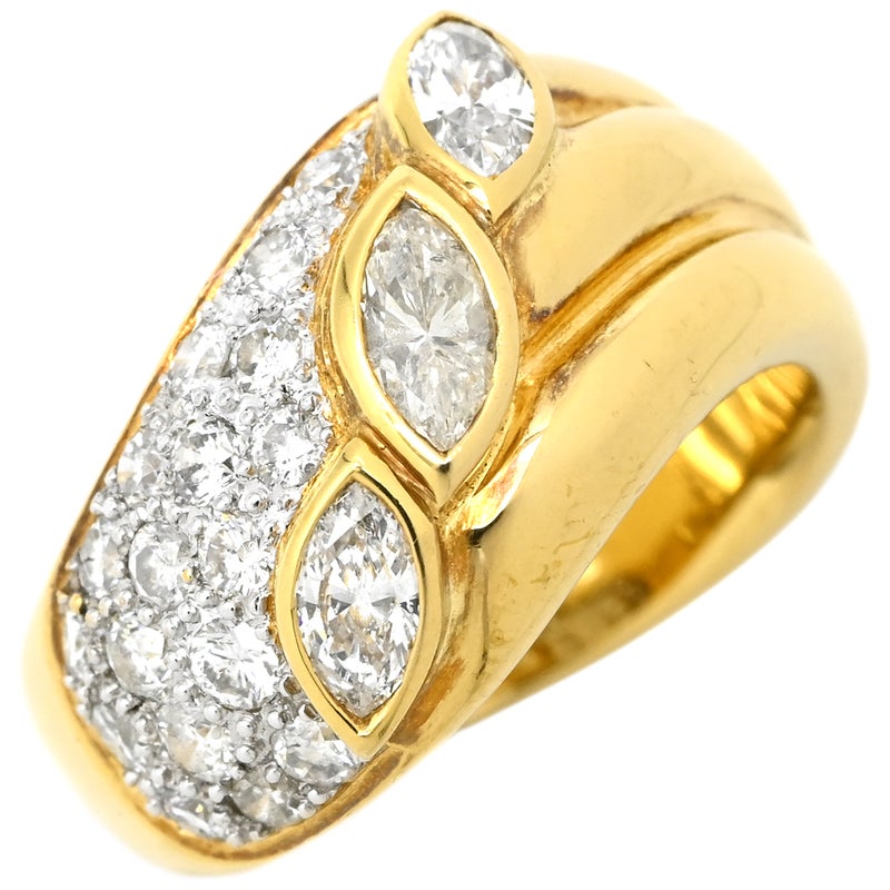 リング 指輪 ダイヤリング イエローゴールド マーキスカット ラウンドカット 12号 【中古】