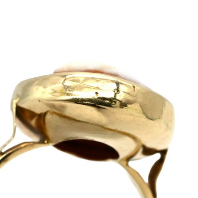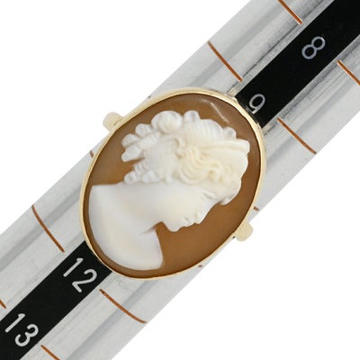 リング 指輪 カメオリング イエローゴールド シェル 彫刻 585 10号 【中古】