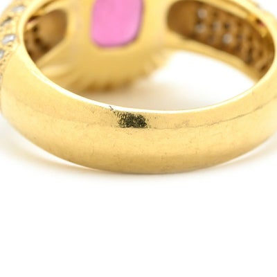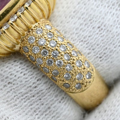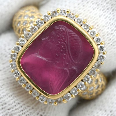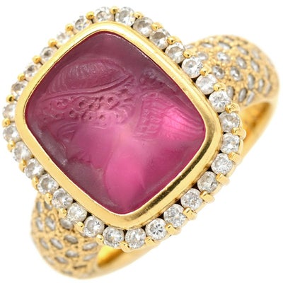 リング 指輪 レッドトルマリン ダイヤ リング レッド×イエローゴールド 赤 スクエア カメオ 浮き彫り ルベライト パヴェ 10.5号 【中古】
