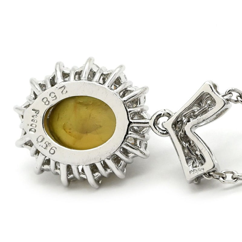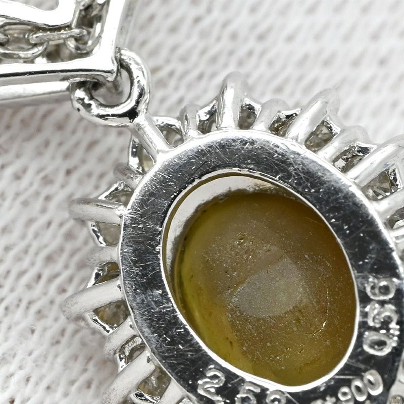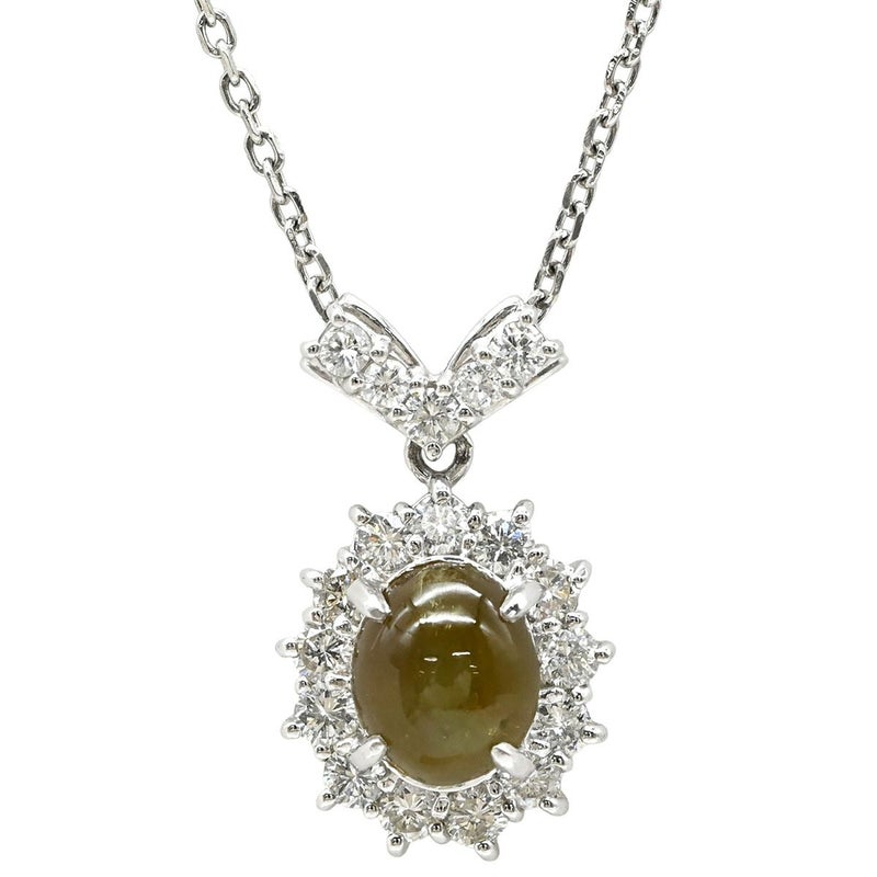 ネックレス クリソベリル キャッツアイ ペンダント プラチナシルバー パヴェダイヤ クリソベリルキャッツアイ プラチナム Pt850 【中古】