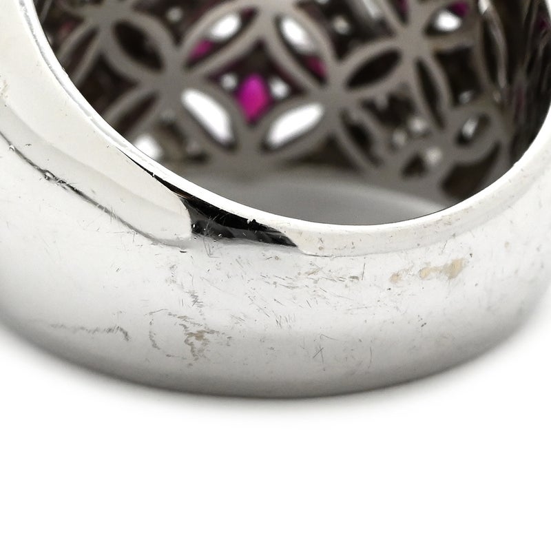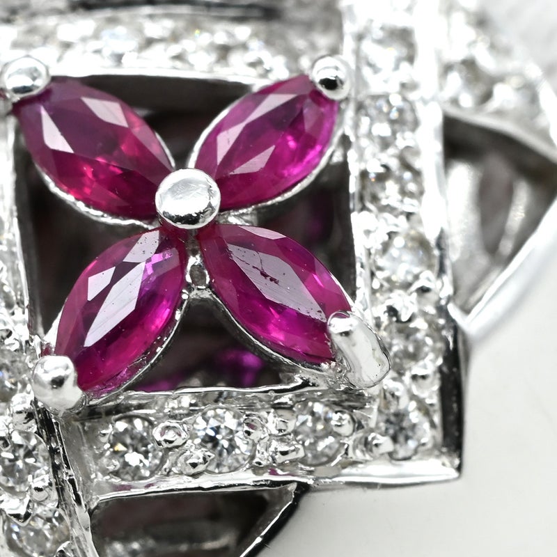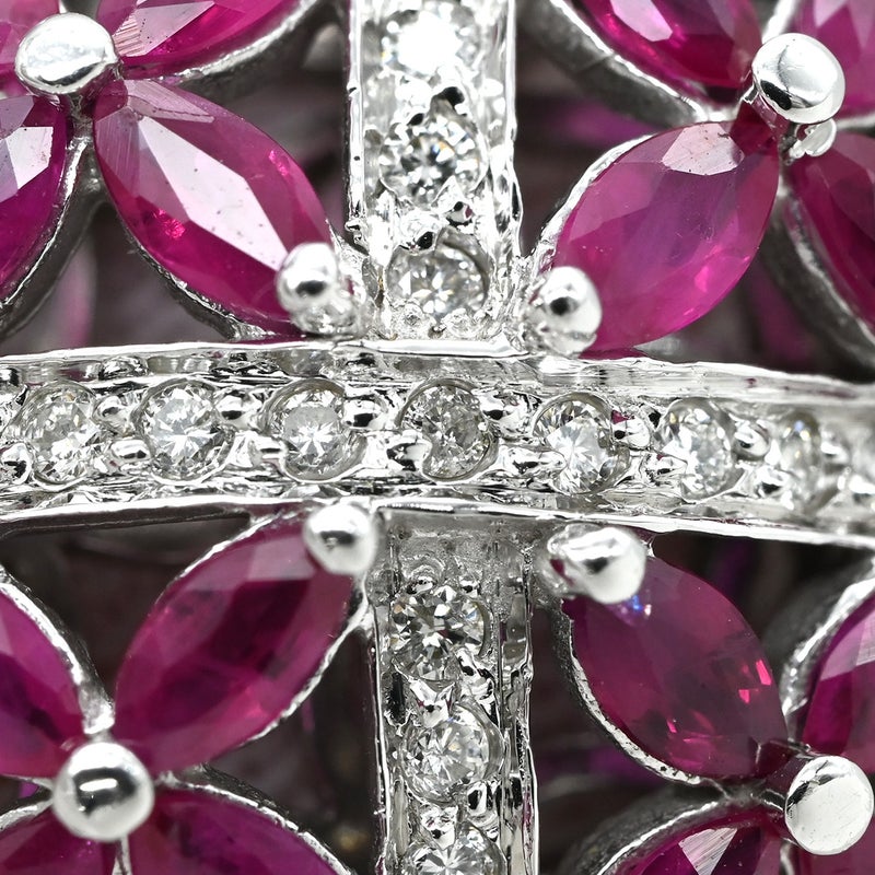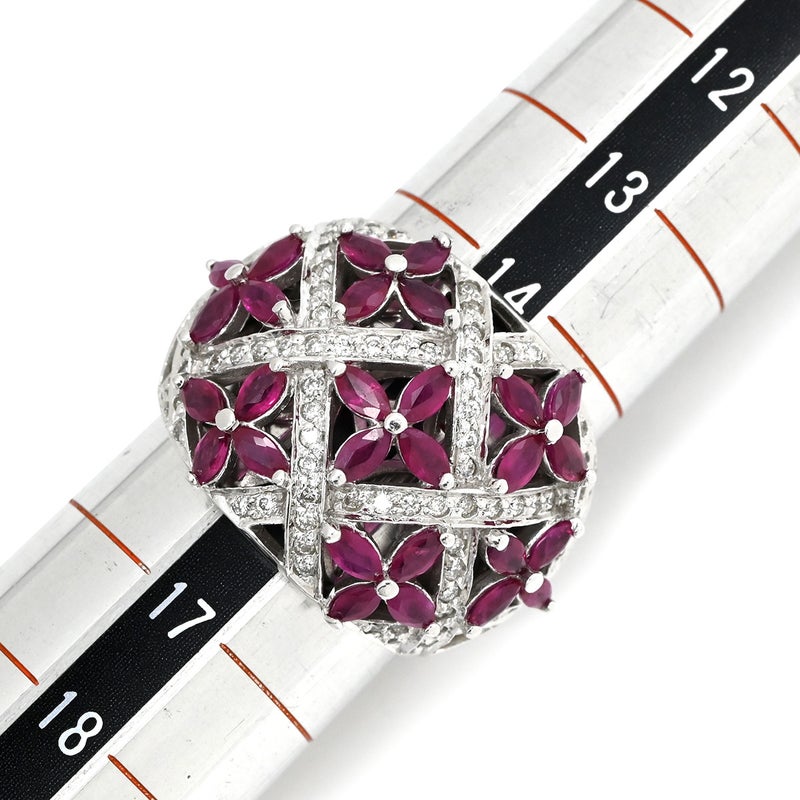 リング 指輪 ラティス ダイヤリング ホワイトゴールド WG 14K ダイヤモンド ルビー フラワークラスター 16号 【中古】