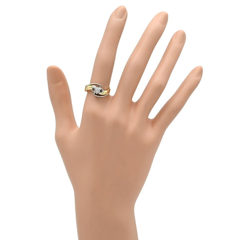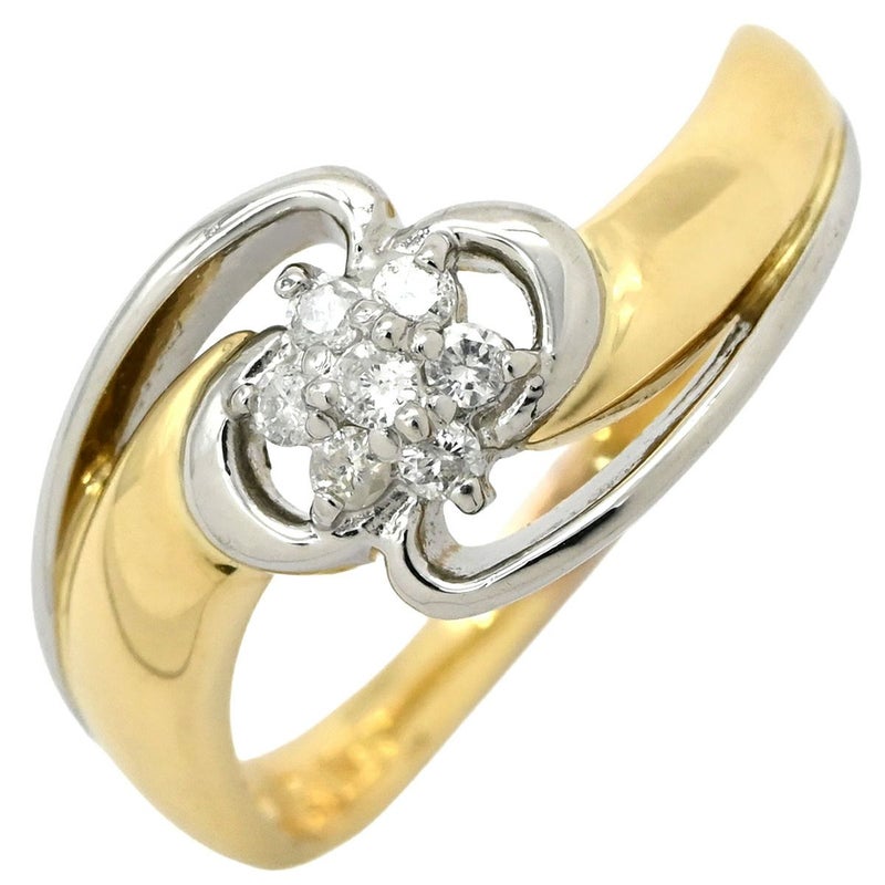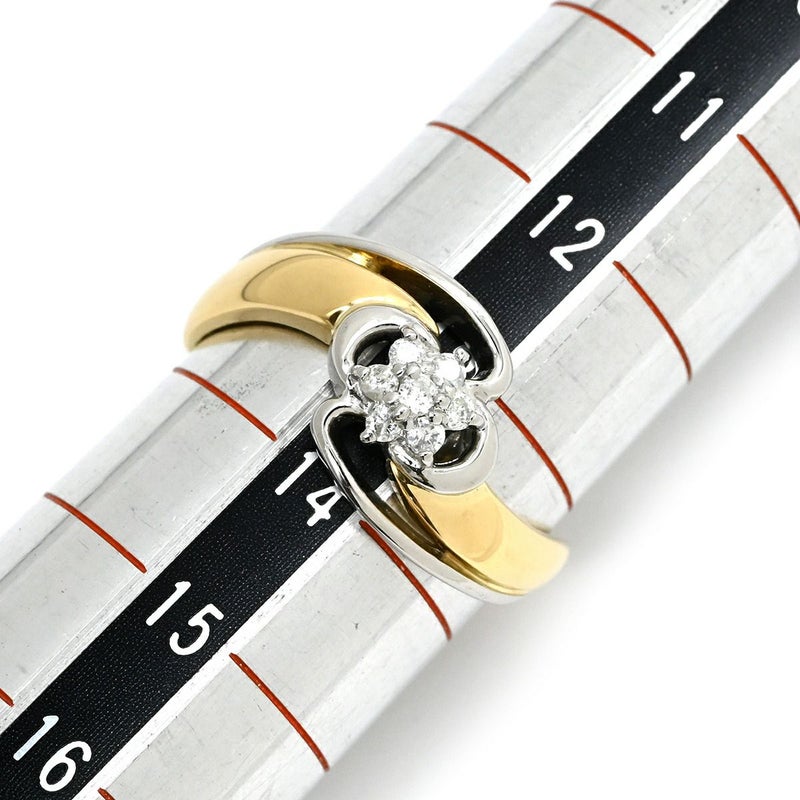 リング 指輪 ダイヤ 0.11ct イエローゴールド×プラチナシルバー K18YG×PT Au750 18K 18金 プラチナ Pt850 メレ 7P 7石 7粒 フラワーモチーフ ウェーブ 13.5号 【中古】