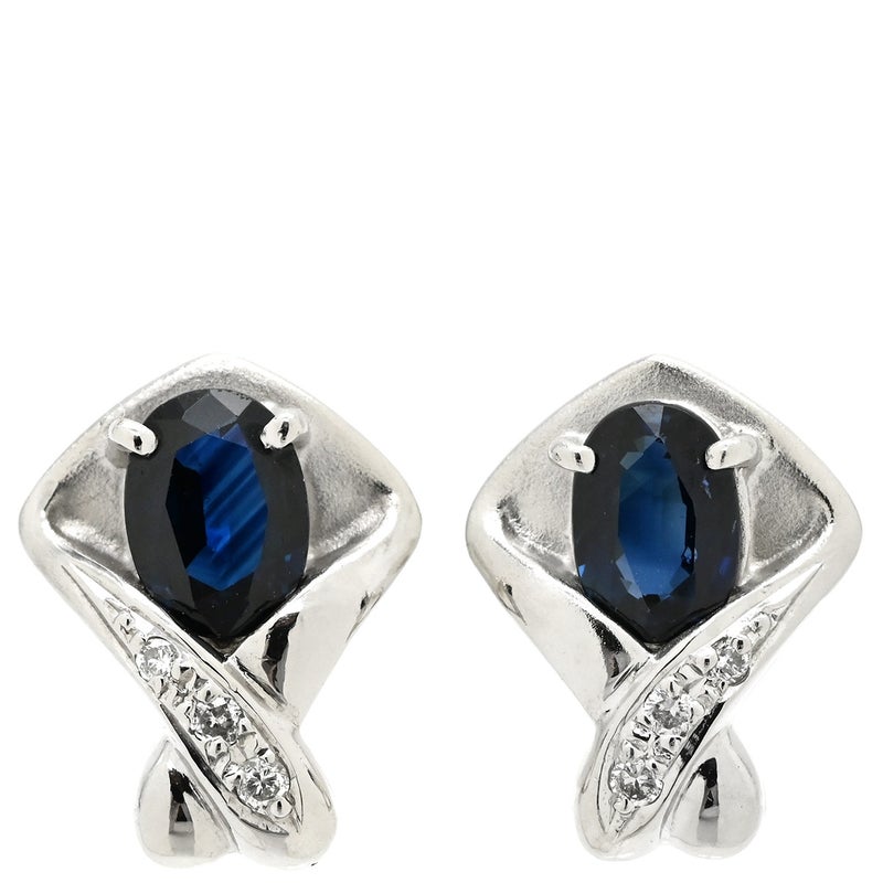 イヤリング ホワイトゴールド×プラチナム×ブルー ブルーサファイア 14K WG 14金 Pt850 ダイヤ ひねりデザイン 【中古】