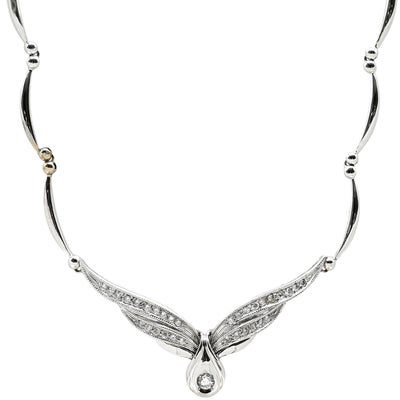 ネックレス ダイヤ ペンダント ホワイトゴールド K18WG Au750 18K 18金 メレダイア ウィング 翼デザイン プレートチェーン 雫 1P 【中古】