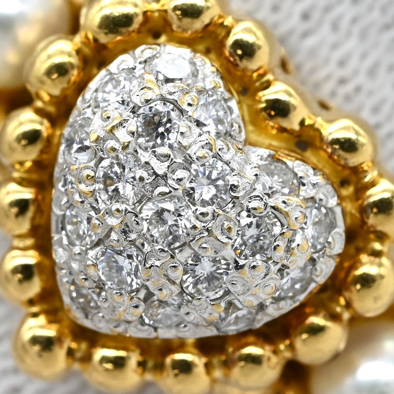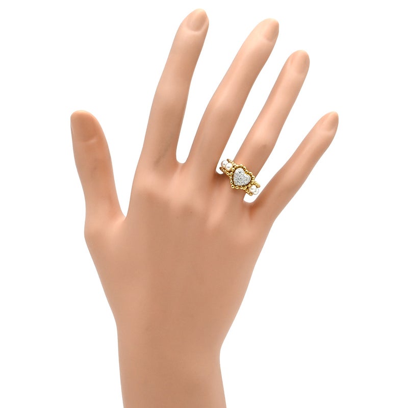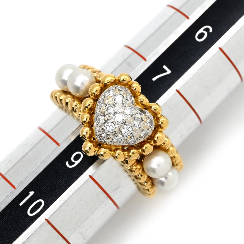 リング 指輪 ダイヤ イエローゴールド×ホワイト パヴェ YG Au750 18K 18金 ハートモチーフ 真珠 パール4粒 8.5号 【中古】