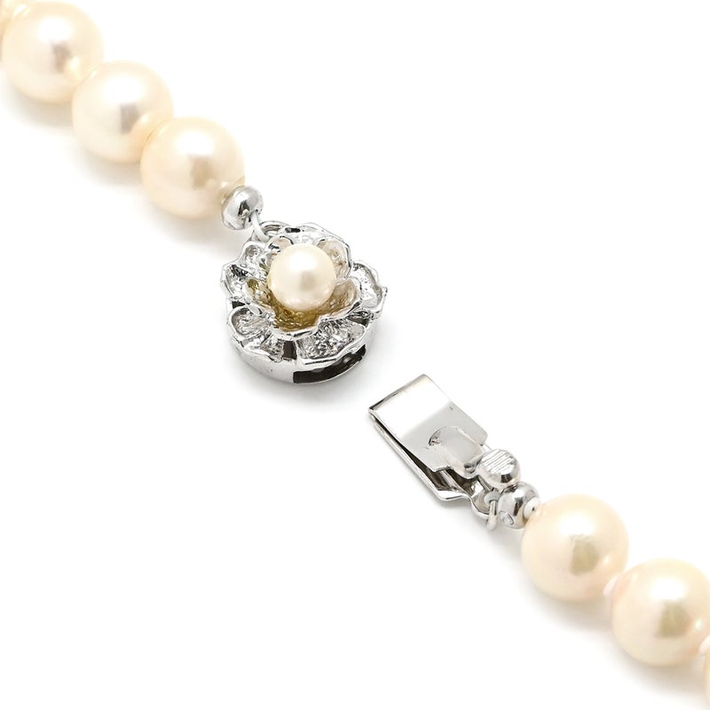 ネックレス 7mm パール ペンダント パールホワイト 真珠 アコヤ ホワイト 白 silver 42cm 一連 ワンタッチ クラスプ 花形 【中古】