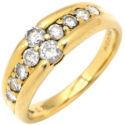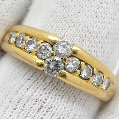 リング 指輪 ダイヤ 0.71ct イエローゴールド 18K Au750 YG 一文字リング ホールマーク 14.5号 【中古】