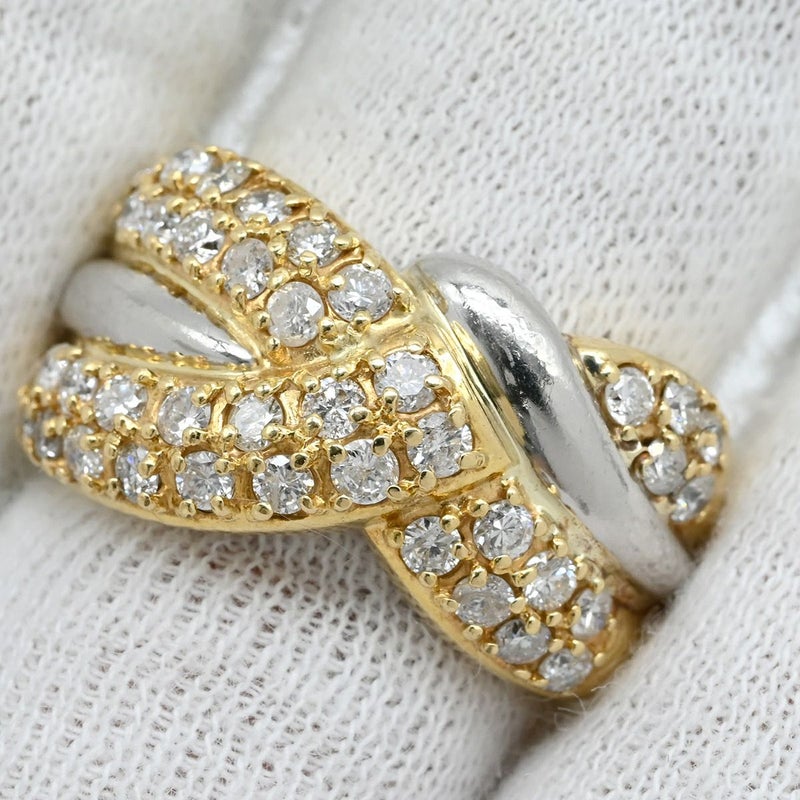 リング 指輪 ダイヤモンド 1.01ct イエローゴールドXプラチナシルバー パヴェダイヤ 18K 750 YG プラチナ コンビ ダイア 10.5号 【中古】