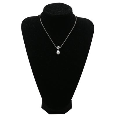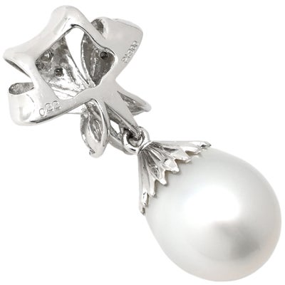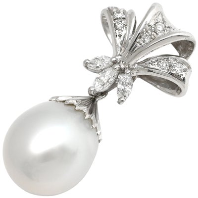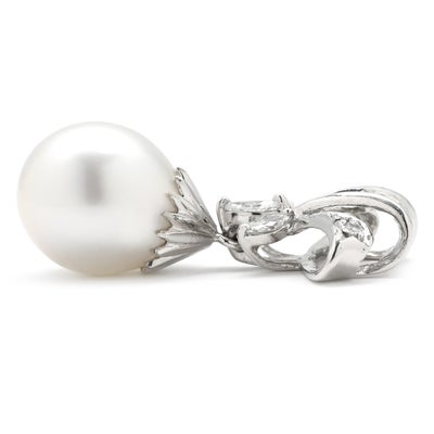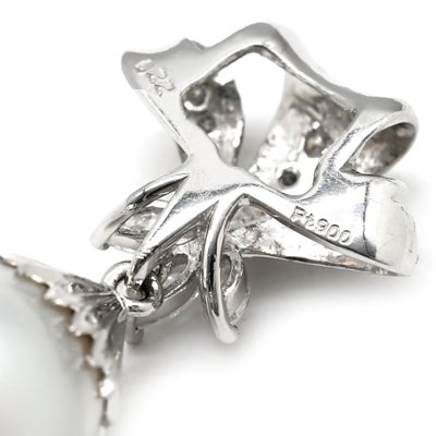 ペンダントトップ パール ダイヤ 0.22ct パールホワイト×プラチナシルバー 白蝶養殖真珠 ネックレスヘッド オフラウンドシェイプ 【中古】