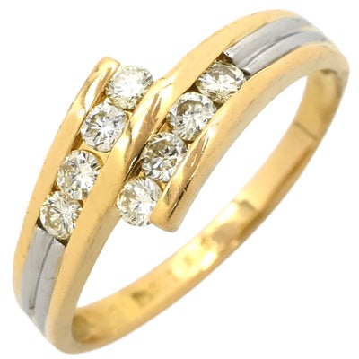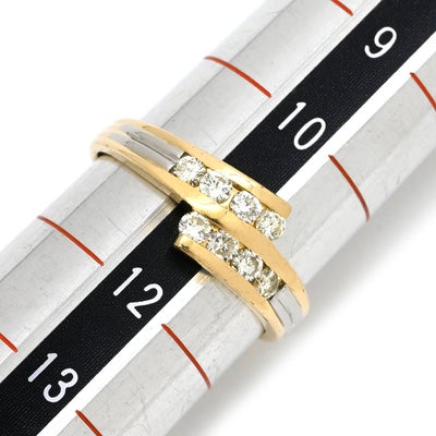 【SALE】 リング 指輪 ダイヤ リング イエローゴールド×プラチナシルバー 18K 750 YG PT900 ダイヤモンド 8粒 8P 8石 バイパスリング 11号 【中古】