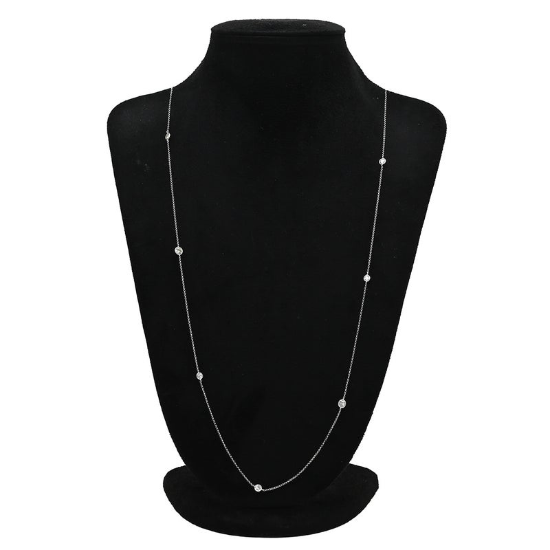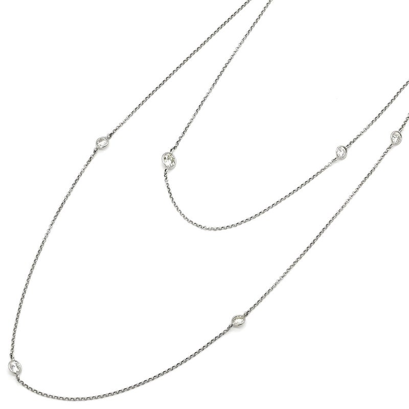 ネックレス ステーションネックレス ホワイトゴールド 10P 10粒 18K WG Au750 ベゼルセッティング ロング 2.46ct 【中古】