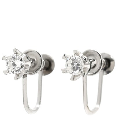 イヤリング ダイヤ 0.18/0.19ct ネジ式 プラチナシルバー 1P 1石 1粒 メレダイヤ ソリティア 6本爪 Pt850 プラチナ 両耳用 【中古】