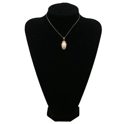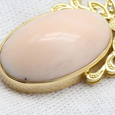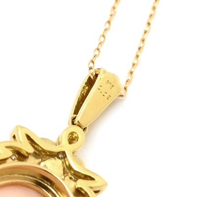 ネックレス 珊瑚 サンゴ ダイヤ ペンダント ピンク×イエローゴールド ダイヤモンド 18K Au750 18金 オーバルカボションカット 【中古】