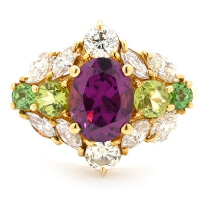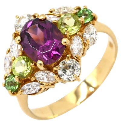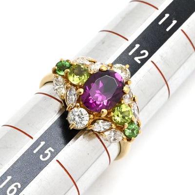 K18YG / ダイヤモンド / ロードライトガーネット / ペリドット / グリーングロシュラーガーネット