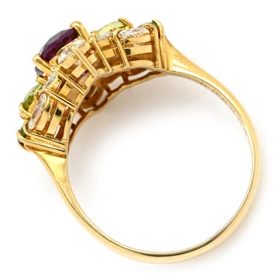 リング 指輪 マルチカラージェムストーンリング イエローゴールド Au750 K18 YG ダイヤ オーバルミックスカット 13.5号 【中古】
