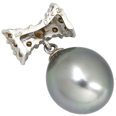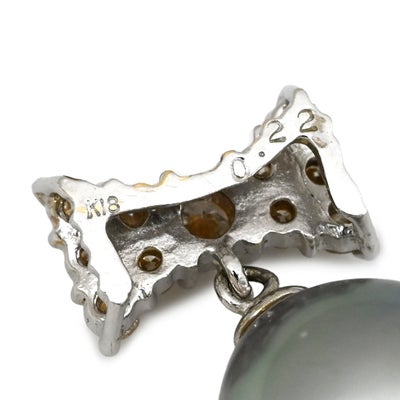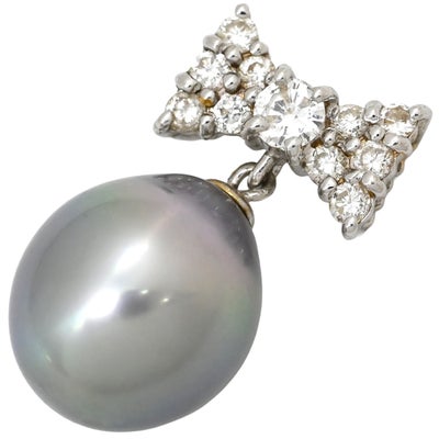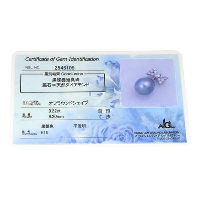 ペンダントトップ 黒蝶パール 9.2mm ダイヤ 0.22ct プラチナシルバー×グレー Au750 18K 18金 真珠 ネックレストップ グレー 【中古】