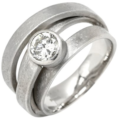 【SALE】 リング 指輪 ダイヤモンド 0.747ct プラチナシルバー Pt900 プラチナ 梨地 平打ち 幅広 ボリューム スプリットアーム 15号 【中古】