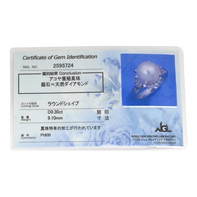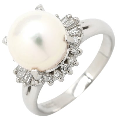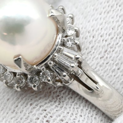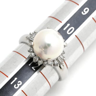 リング 指輪 アコヤパール 9.1mm ダイヤ 0.3ct パールホワイト×プラチナシルバー あこや 真珠 1P 1粒 白 ラウンドシェイプ プラチナ Pt900 11号 【中古】