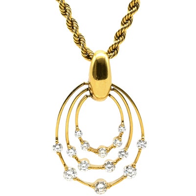 ネックレス ダイヤモンド 0.31ct イエローゴールド Au750 18K 18金 12P 12粒 【中古】