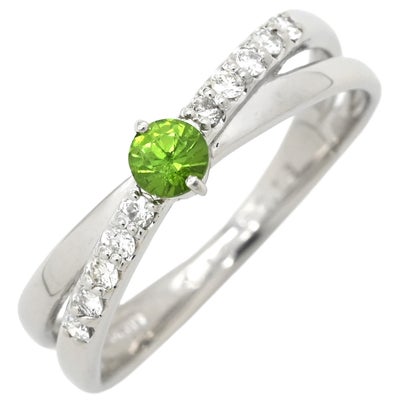 リング 指輪 ガーネット 0.19ct ダイヤ 0.13ct グリーン×プラチナシルバー 緑 プラチナ900 デマントイドガーネット 12.5号 【中古】